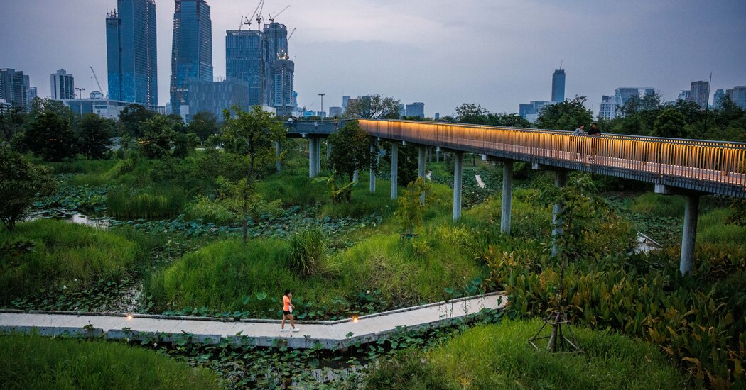 The transformation has been a stunning success, creating a 102-acre oasis for city dwellers. The site — an expansion of the existing Benjakitti Park — includes a mile-long elevated walkway, as well as water-purifying wetlands, 8,000 new trees, pickleball and basketball courts, and a dog-walking zone.