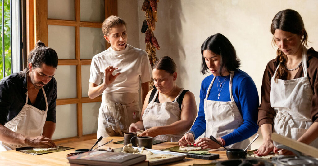 Over the blitz of a whirring blender, Emilio Pérez, a chef and partner at Casa Jacaranda cooking school in Mexico City, yelled, “Check this out guys, come here.” Standing in front of a burner, he incinerated a tortilla, its charred remains bound for mole sauce, before directing our attention to the blender to taste the […]
